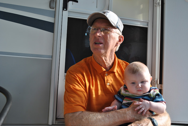 Thursday afternoon we went over to my grandparent's RV park where they have stayed for the winter, and Clint, Papa, and Jet went fishing!! We had so much fun watching them and Jet loved helping Daddy and Papa fish :) They caught 3 fish!!! enjoy the pics below...